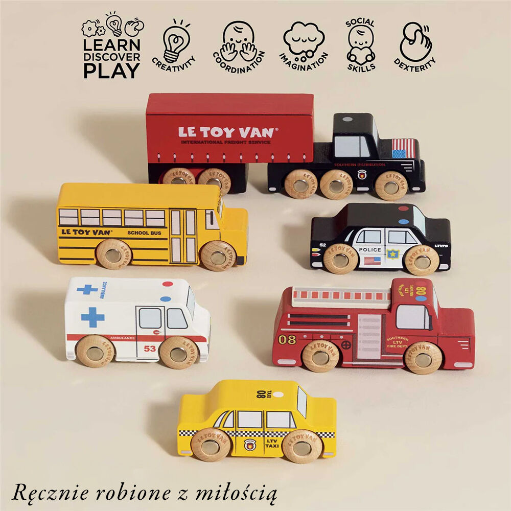 Le Toy Van - Drewniane samochody zestaw Nowy Jork, zabawka pojazdy dla dzieci