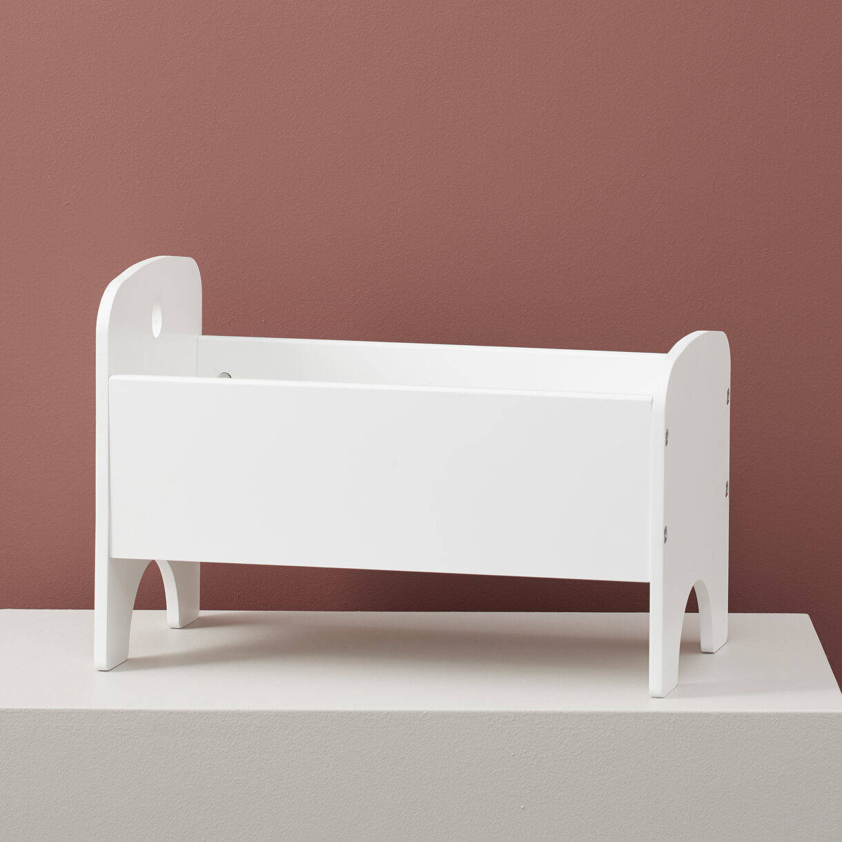 Drewniane łóżeczko dla lalek to idealne miejsce do układania i usypiania lalek lub pluszaków. Łóżeczko wkomponuje się w każdy wystrój pokoju małej księżniczki, będzie wspaniałą dekoracją dziecięcego pokoju. Wyjątkowy mebelek, wykonany z płyty MDF, posiada prześcieradło i poduszkę. Pościel wykonana jest w 100% z bawełny. Najważniejszą rolą łóżeczka to pomóc utulić do snu milusińskich Twojego dziecka. Zabawa lalkami i opieka nad misiami znakomicie rozwija wyobraźnię, uczy troskliwości i odpowiedzialności za innych oraz - co najważniejsze - daje mnóstwo radości ! Produkt jest zgodny z aktualnymi standardami bezpieczeństwa UE i standardem zabawek EN 71.