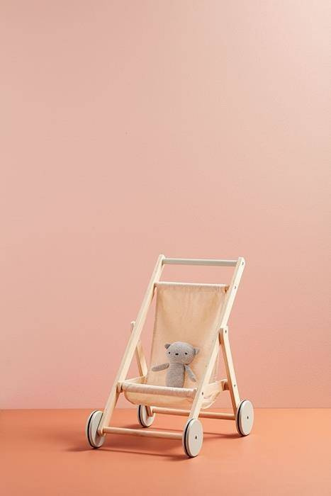 Ta wyjątkowa zabawka dla dziecka posiada piękne pastelowe zielone koła i małą kieszeń z tyłu siedziska, a pod siedzeniem znajduje się dodatkowe miejsce do przechowywania wszystkiego, czego potrzebujesz do pielęgnacji lalki czy przytulanki. Wózek dla lalki wykonany jest głównie z niebielonej bawełny oraz MDF. Przepiękny pomysł na prezent dla trzylatka.
