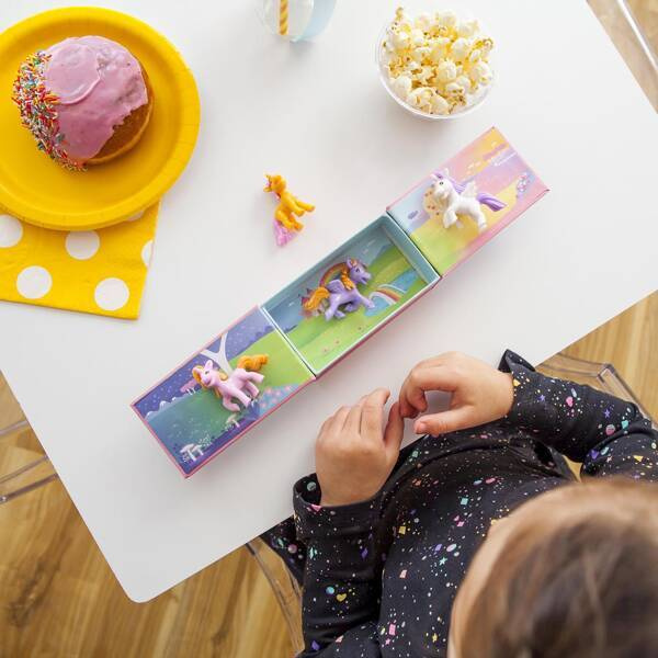 Skład zestawu: 4x figurki jednorożców, pudełko zamykane na magnes