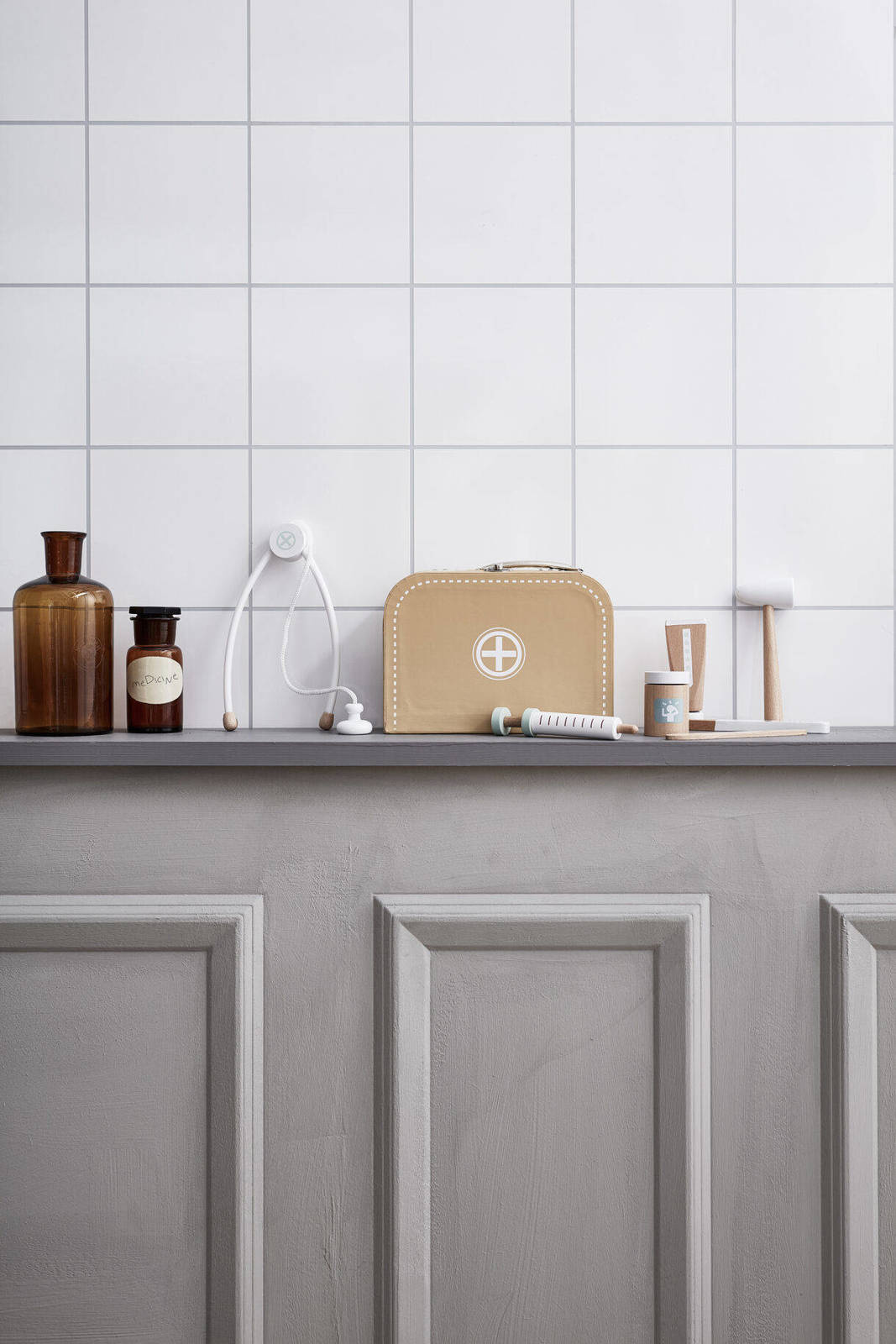 Z pięknym, drewnianym zestawem Twój mały lekarz będzie czuł się jak profesjonalista. Już nikt nie bedzie chory! Odgrwanie ról to ulubiona zabawa dzieci, a ten zestaw pozwoli dziecku wcielić się w postać lekarza. Elegancka, wykonana z grubego kartonu walizka mieści w sobie najpotrzebniejsze rzeczy niezbędne do udzielenia podstawowych badań lekarskich. Akcesoria starannie wykończone wykonane są drewna, bezpieczne w użytkowaniu. Produkt przeznaczony jest dla dzieci, które uwielbiają zabawy w odgrywanie ról. Zabawa rozwija zdolności ruchowe oraz wyobraźnię dziecka. Zestaw inspiruje dzieci do kreatywnej zabawy i może pomóc w przełamaniu lęku przed wizytami u lekarza :)