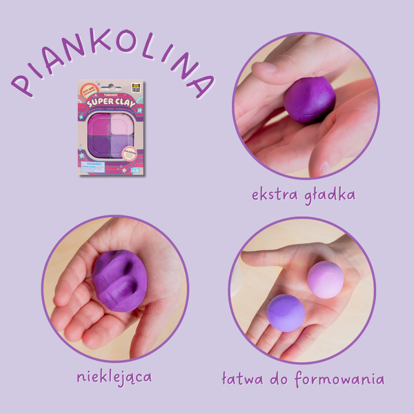Delikatna i miękka w dotyku masa zapewnia dzieciom niezwykłe doświadczenia sensoryczne. Zabawa piankoliną pobudza wyobraźnię i rozwija kreatywność, a przy tym koi i wycisza, czyniąc czas spędzony na zabawie jeszcze bardziej wartościowym. To wsparcie w rozwijaniu sprawności dłoni, koncentracji i cierpliwości. Dzięki ugniataniu i rzeźbieniu dziecko ćwiczy małą motorykę, tak ważną w nauce pisania i rysowania.