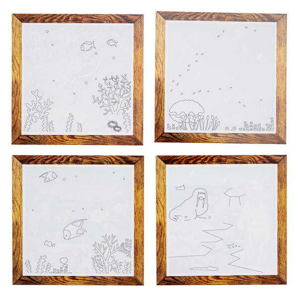 Skład zestawu: 4x wysokiej jakości karty do malowania w formie obrazów (wielokrotnego użytku), 1x wodny pędzelek