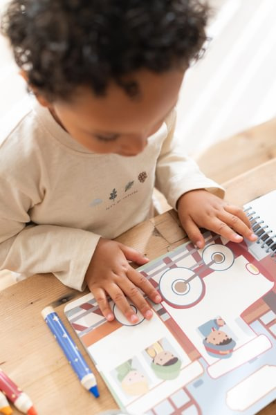 W zestawie znajdują się 3 miękkie kredki, dopasowane do małych rączek. Całość wykonana jest z wytrzymałego papieru, który zapewnia trwałość i komfort kolorowania. To doskonała zabawa, która rozwija kreatywność, koordynację i cierpliwość zarówno w domu, jak i w podróży.