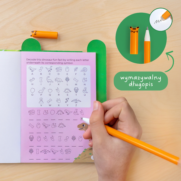 Jeśli Twoje dziecko pokochało kulinarne łamigłówki, sprawdź także inne motywy z tej samej serii. Każdy zestaw ma taki sam kompaktowy format, zmazywalny pisak i mnóstwo stron pełnych kreatywnych zadań. Różnią się tematyką, dzięki czemu możesz dopasować książeczkę do zainteresowań swojego malucha.