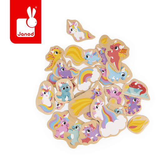 Janod Magnesy drewniane Jednorożce i smoki 24 szt. 2+